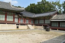 창덕궁 대조전에 있는 흥복헌. 1910년 8월 22일 이곳에서 한일 병합 조약을 찬성하는 마지막 어전회의가 열렸다. 옛 건물은 1917년 화재로 소실되었고 현재 건물을 1920년 중건한 것이다.