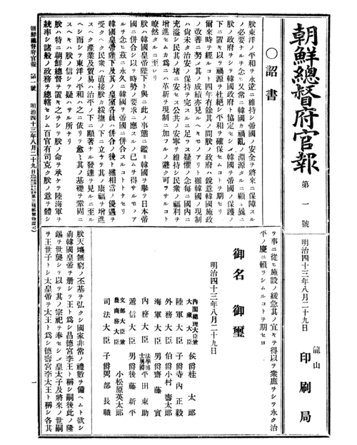 메이지 43년 8월 22일 통감 자작 데라우치 마사타케