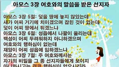 우리가 하나님을 향하여 전적으로 열린 마음으로 엎드릴 때 하나님의 뜻을 알려 주십니다. 8 절: ‘사자가 으르렁거리는데’라는 말씀은 하나님 심판 선포의 상징적 표현으로서 임박한 전쟁과 멸망의 예고를 가리킵니다 (사 5:29; 렘 2:15). 이 구절은 아모스가 자기의 예언이 여호와에 의한 것임을 밝혀 줍니다.