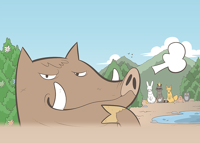 “그래서 말인데요. 우리 동물대표들이 한 가지씩 문제를 내면, 멧돼지님께서 정답을 맞히시면 됩니다. 물론 멧돼지님은 산전수전 다 겪으시고 그만큼 지혜를 갖추셨으니 크게 어려운 일도 아니라봅니다만….”