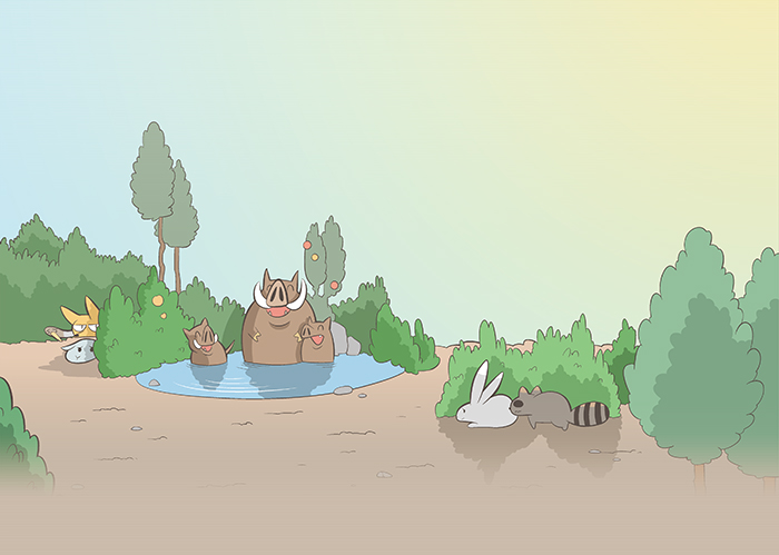 옹달샘을 목욕탕 삼아 그 안에 들어가 물장구치며 놀고 있는 멧돼지가족을 멀찌기 떨어져서 바라보던 동물들의 마음은 마냥 무거웠다. 뿐만 아니라 멧돼지가족에 대한 원망이 점차 쌓여갈 수밖에 없었다.