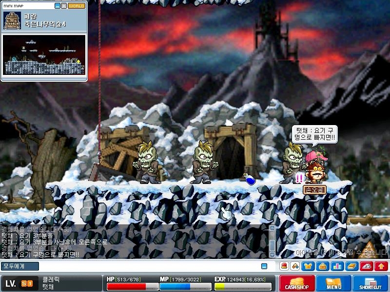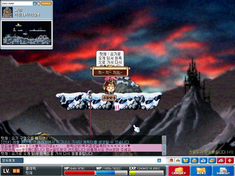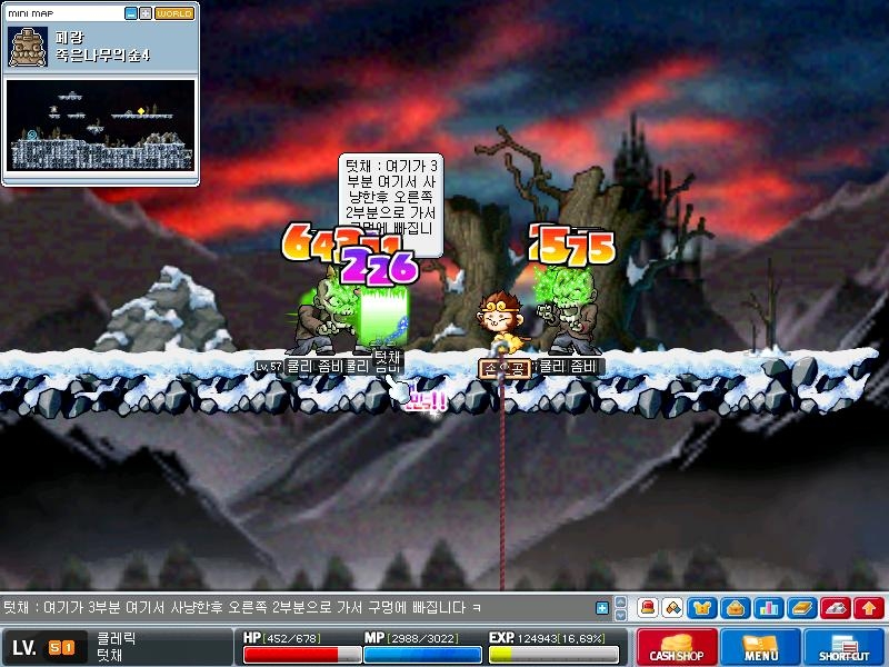 1이라고 써진곳에서 힐을씁니다 그리고 올라가서 3부분 사냥후 2라고 써진곳에 떨어지면 어딘가 이동하는데 거기서 내려오거나