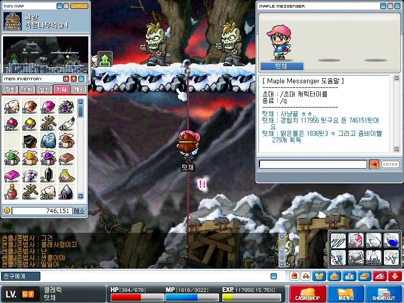 흑자 계산 메소ㅡ>76508원 + 좀비이빨 279개 획득 =18135+76508=94643