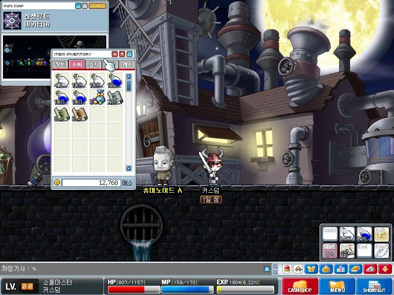 흑자메소: 10878메소+나무망치 126(개당15메소)=총12768원