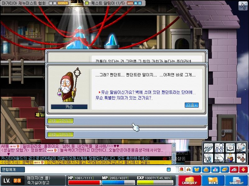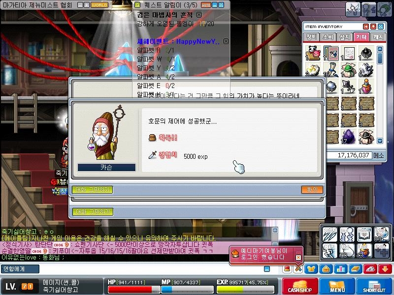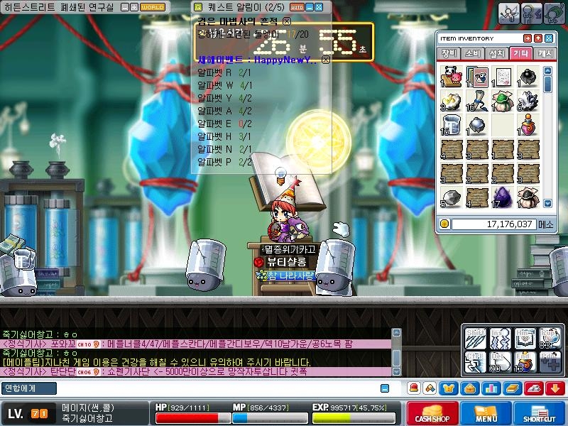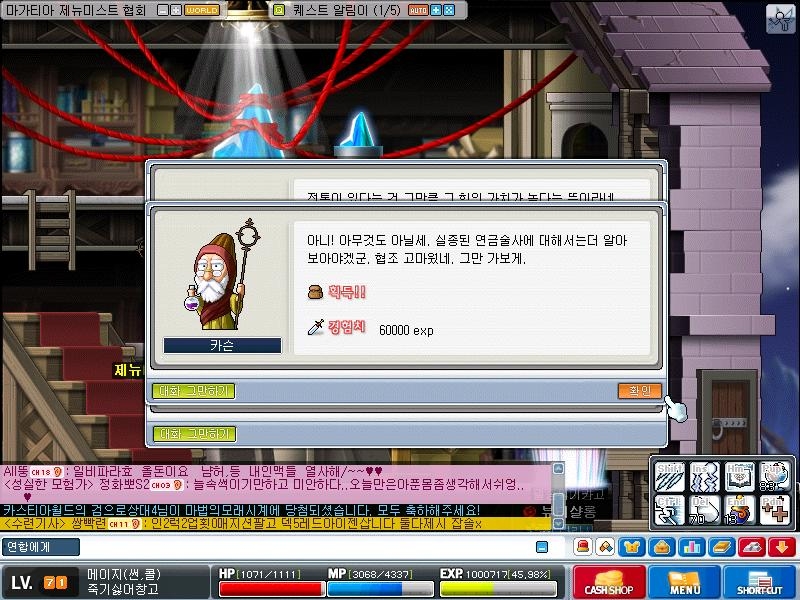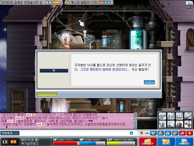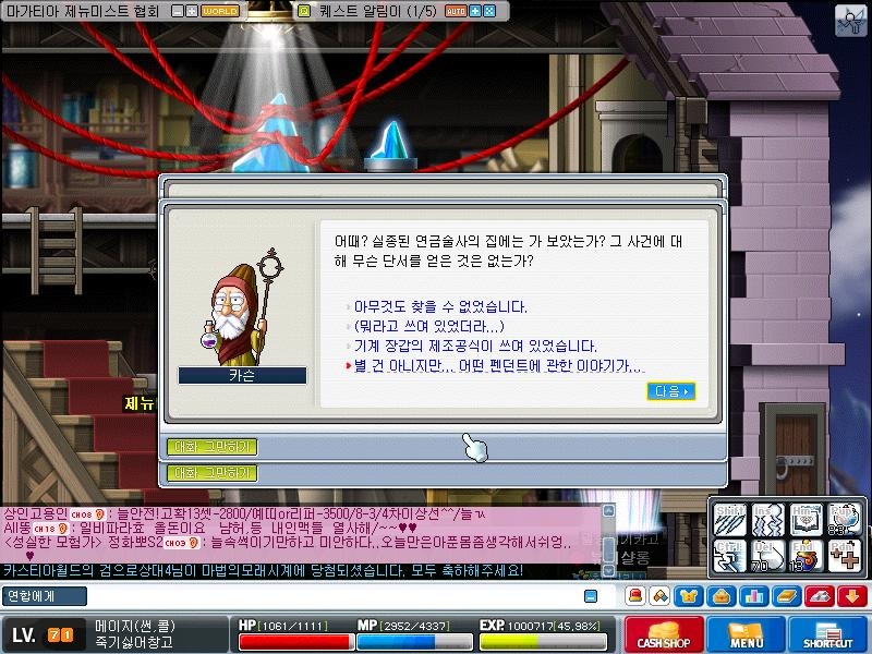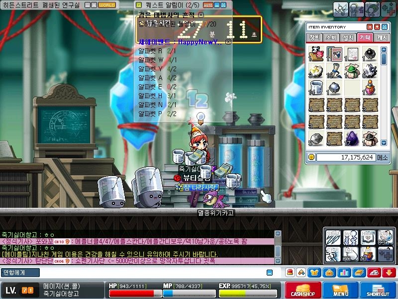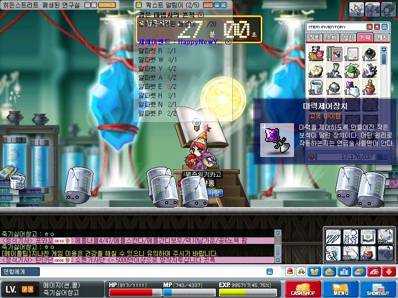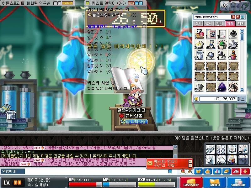 이퀘스트의 요구아이템인 마력제어장치가 떳습니다. 3분내로 떳군요.