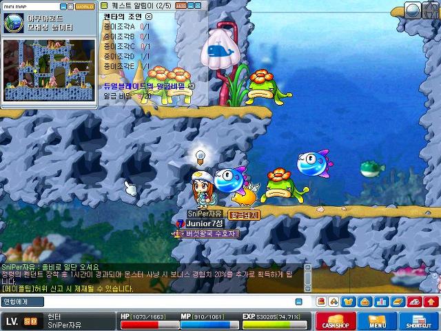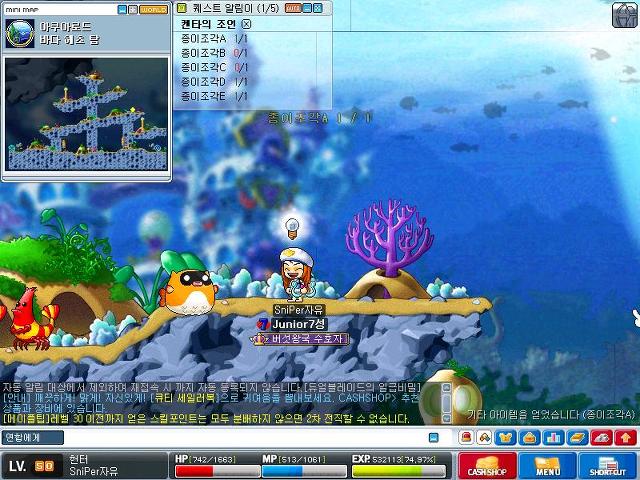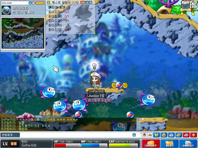 저는 아란 라이딩 퀘스트 때문에 물개고기 50개 모으면서 한 맵에서 계속 상자 캤어요 ㅎㅎ
