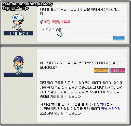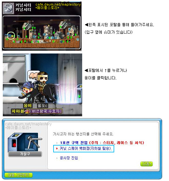 ▲요약: 커닝시티 지하철의 개찰구를 통해 들어가 커닝 스퀘어역으로 가면 만날 수 있는 혁이의 소원을 들어주자.