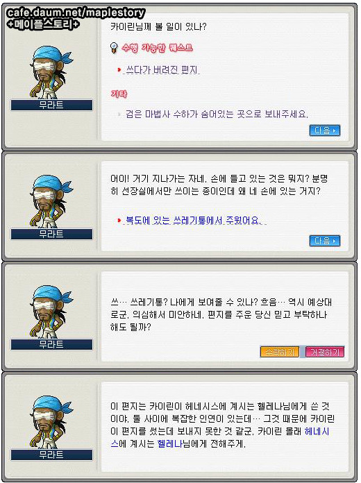 ▲역시...휴지통이 NPC 였네요. 편지를 획득합니다.