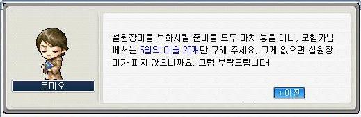 ※ 제뉴미스트연구소 202호나 203호에서 호문쿨루 잡고 5월의이슬 20개 모아옵니다.