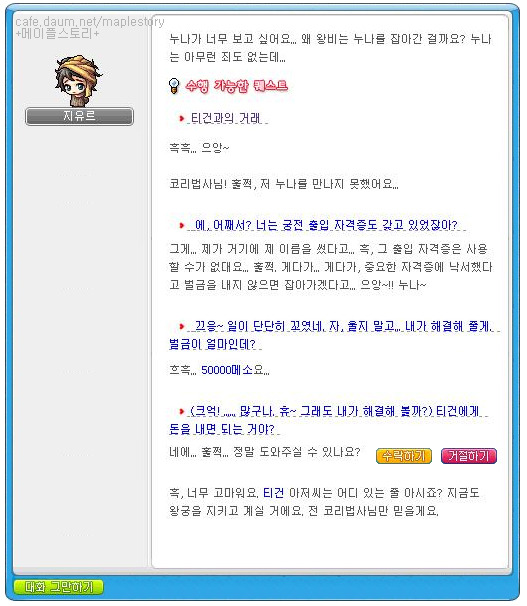 5만 메소 지불하고 퀘스트 완료입니다.