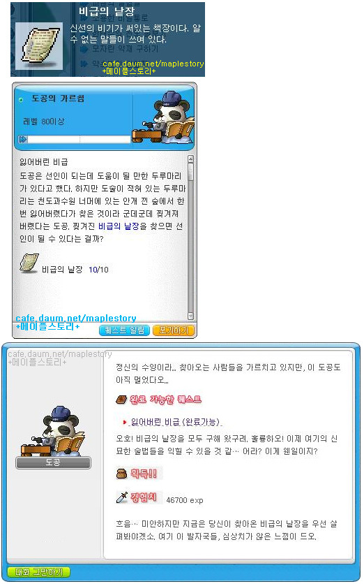 비급의 낱장 잘 안나옵니다. 비급 수십마리 잡아야 한 개 얻을 수 있습니다.