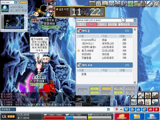 그래서 머리를쥐어짜서파티구성을 약간에변경을하게됫습니다. 다리공격보마가잇기에 나로를2명을넣엇구여 ㅎ