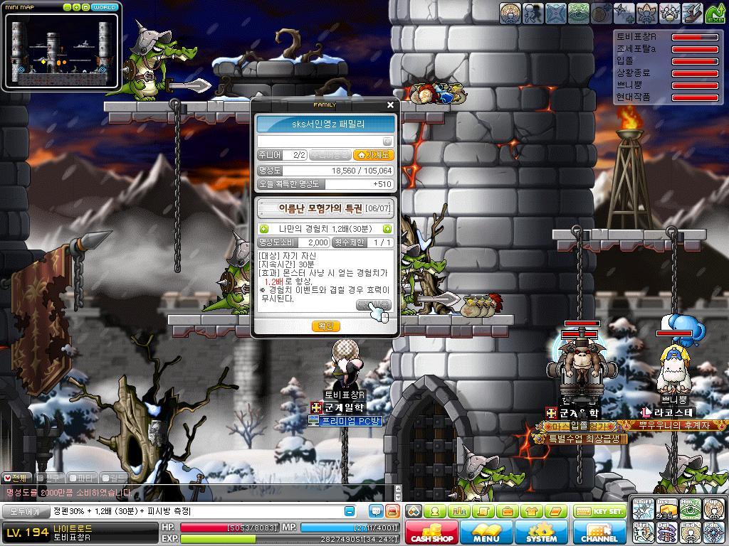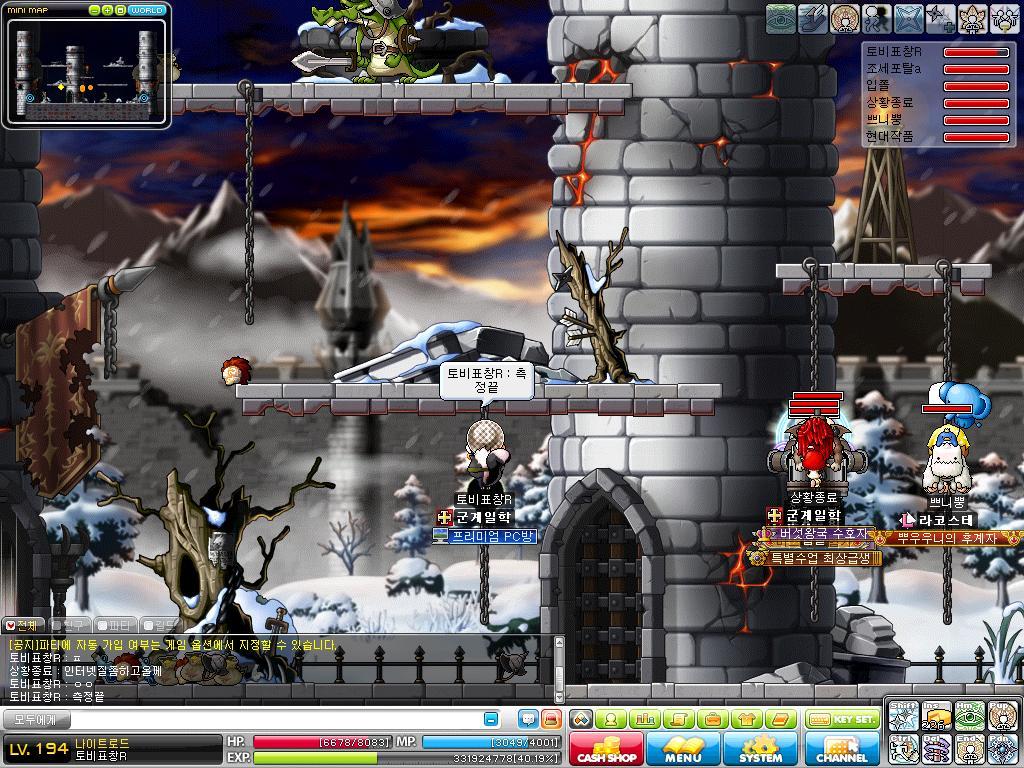 사냥방법: 194나로 성벽1 나머지줄매달 솔플