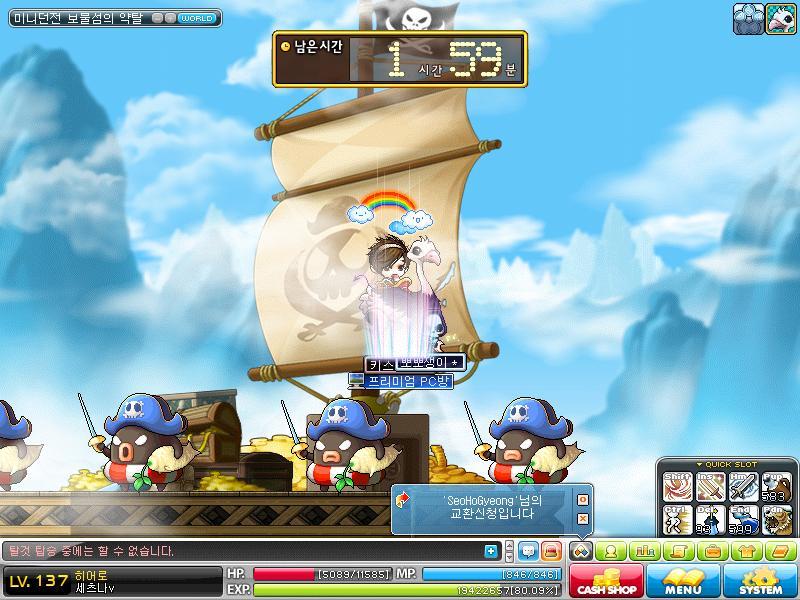 1. 지역(맵이름) : 빨간코 해적단 소굴 2 -> 미니던전