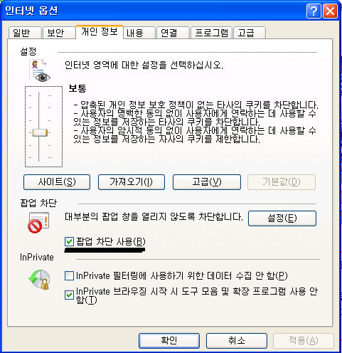 팝업 차단이 문제가 있다고 하여 팝업 차단에 설정을 통하여 메이플스토리 홈페이지를 허용 홈페이지에 추가하니..