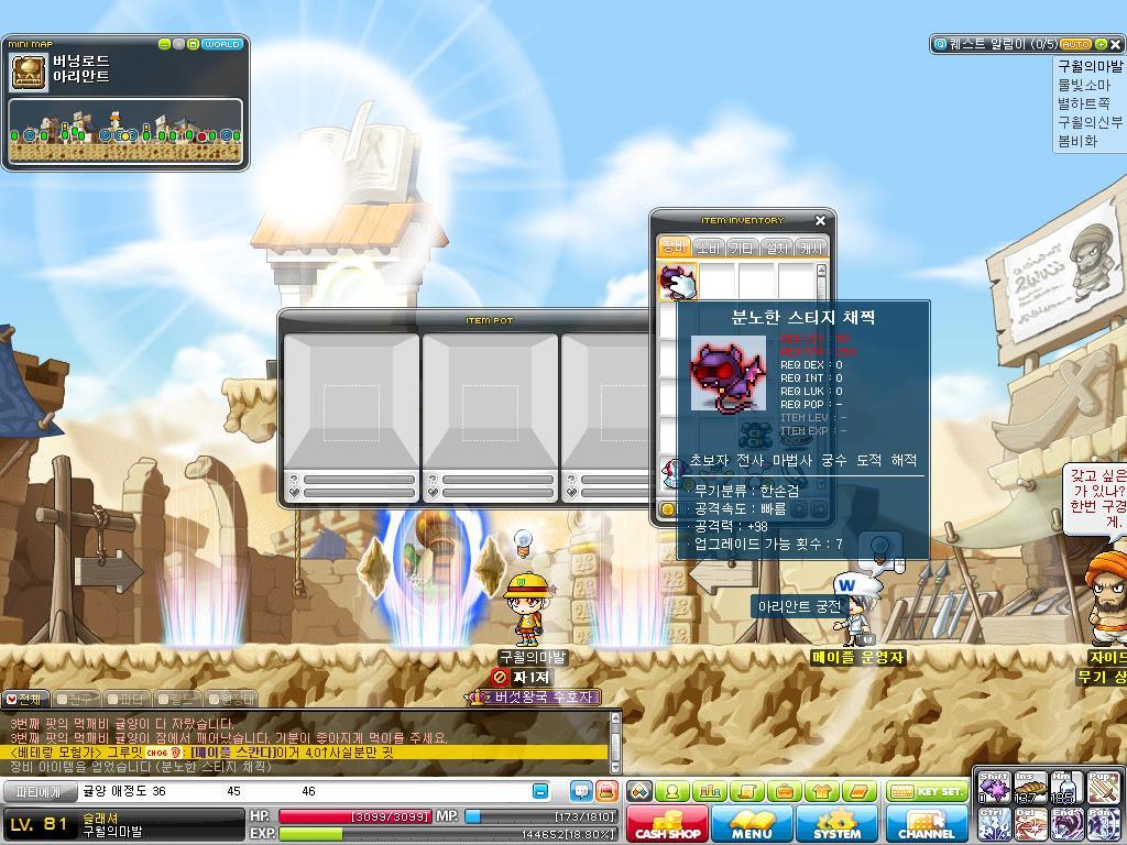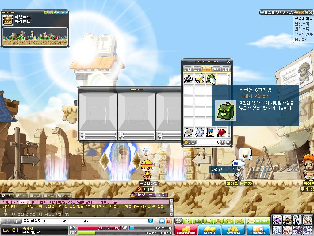 마지막으로 애정도 46 더 달콤한 열매에서 나온 아이템은....의문의 메소 주머니... 열어 보니 5만메소 였어요...