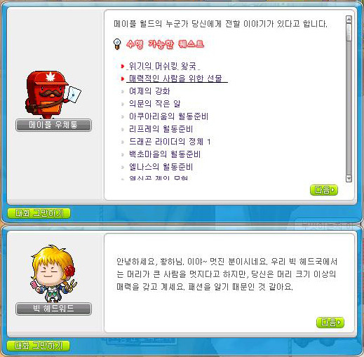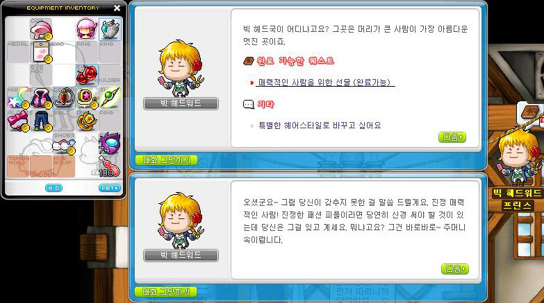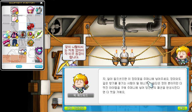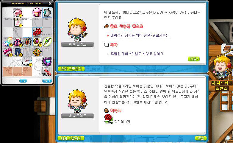 * 장미꽃 한 송이를 빅 헤드워드에게 가져다 주면 퀘스트 완료가 되고 포켓창이 생깁니다.