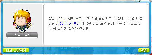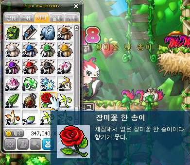 * 장미꽃 한 송이는 아무 약초에게나 나올 수 있으며 확률은 낮습니다 ( 약초 1시간반 캐서 나온.. )