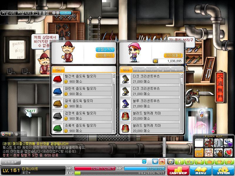 커닝시티 호신용품점을 이용하는것이 마이스터빌 포탈과도 가깝고