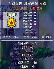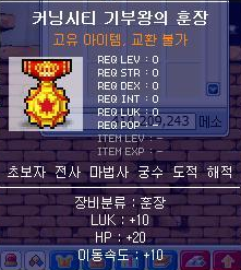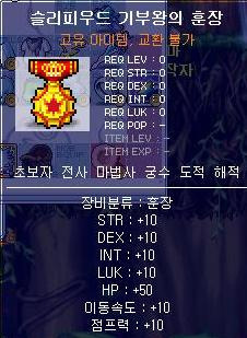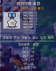 훈장(메달)은 장비아이템에 한칸으로서 한개만 착용이 가능하다.