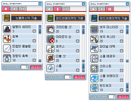 윈드브레이커(2차)스킬 스톰브레이크16-보우마스터리2,스톰브레이크1씩(이렇게 스톰브레이크20까지M하게합니다)