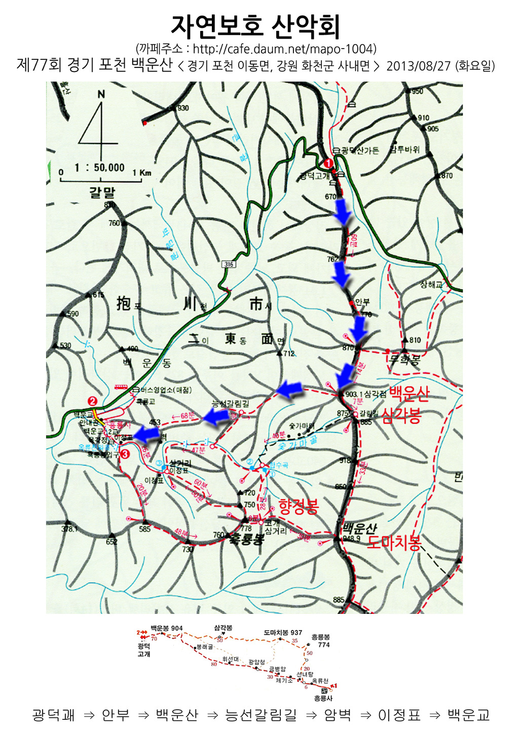 자연보호 산불조심 산악회 8월 27일 백운산 산행갑니다.