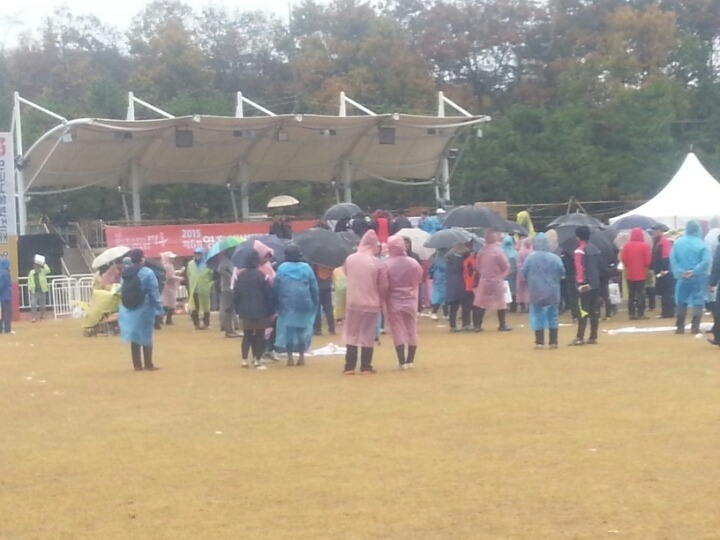 그 와중에서 사회를 보는분(탈랜트 이름?)이 힘차게 사회를 보면서 비가 왔지만 대회는 계속진행 합니다,