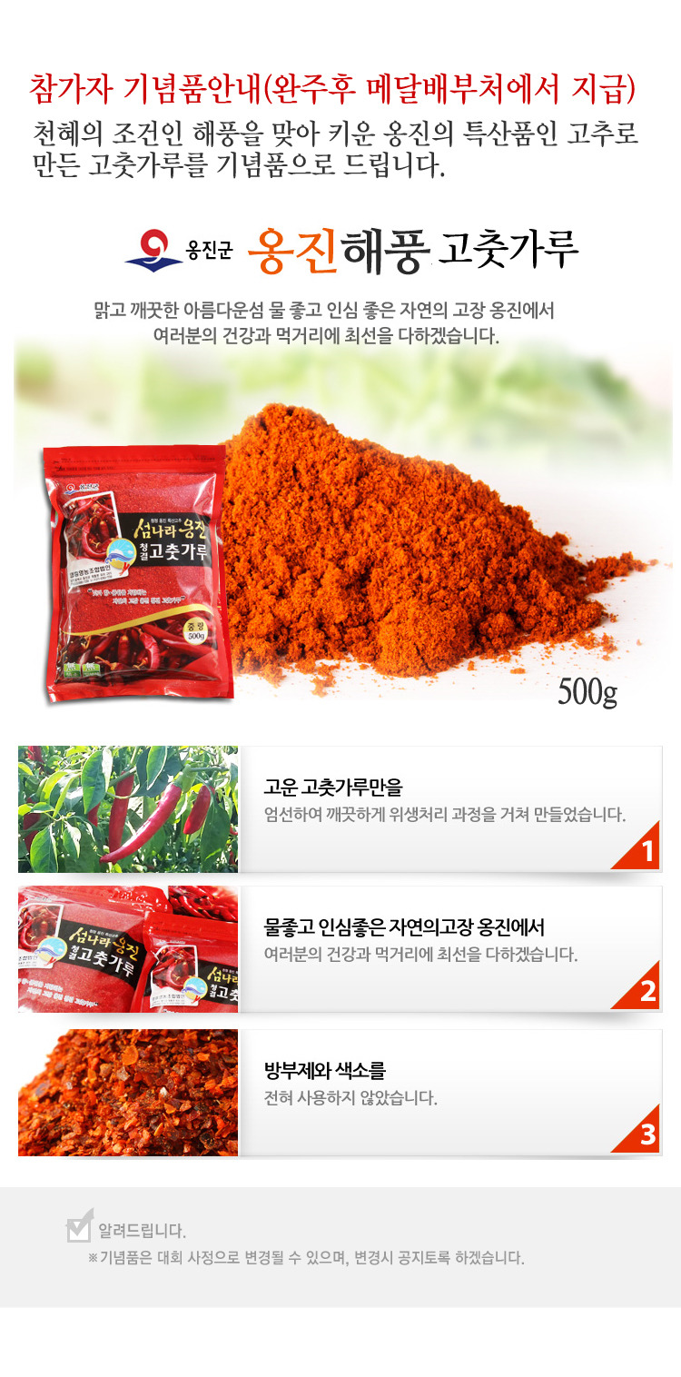골인 후 완주 메달을 받고 기념품(고춧가루)받으려고 하니 기념품이 다 떨어져서 나중에 택배를 보내준다고 한다 ㅋㅋ