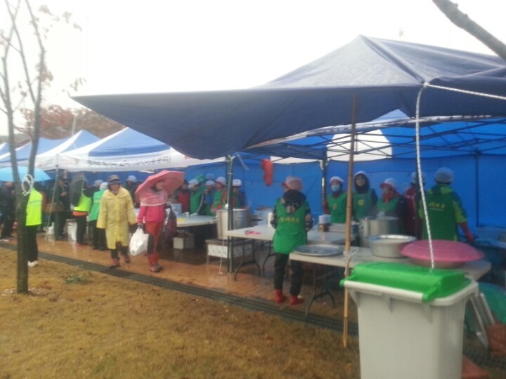 출발전부터 따뜻한 두부제공하고, 비가 와서 전부 다 1회용 우비제공, 맛있는 국수, 두부, 막걸리 무한리플로 매우 친절하게 맛있는 음식을 무한정 제공한다. 새마을 자원봉사자분들도 너무 너무 친절함을 느껴본다.