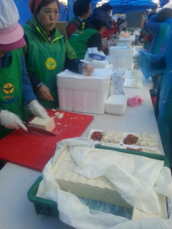 이제 배가 불러 화장실가서 옷을 갈아 입고, 아무래도 서운한것 같아 막걸리에 두부를 마시고 광화문 천막에 있는곳에 가서 인사를 하고 2시에 출발하는 셔틀버스로 이동해 본다