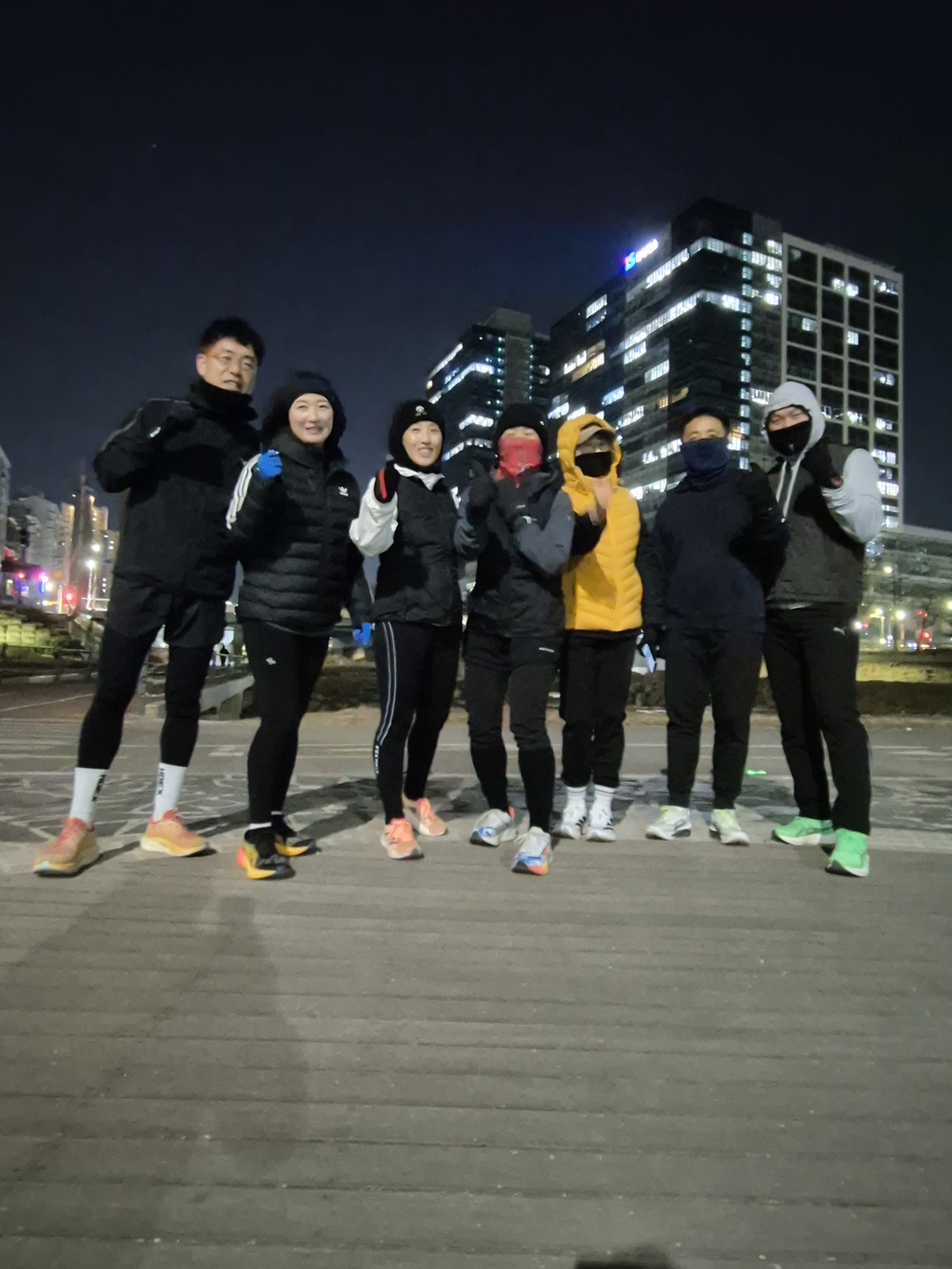 이렇게 추운 날에도 쌍개울에 모여 열심히 훈련을 하신 여덟분 (1.빅런 2. 엘사 3. 벤츠 4.레모나 5. 깡여사 6.현민빠 7.맘부 8.샤데스)