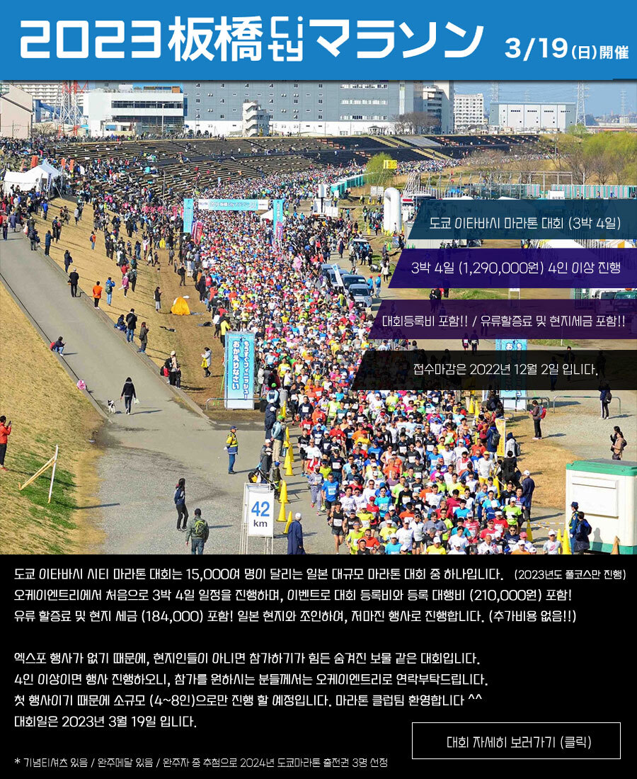 도쿄 이타바시 시티 마라톤 소개합니다. 작성자오케이엔트리|작성시간22.11.14|조회수69 목록 댓글 0 글자크기 작게가 글자크기 크게가 다음검색 현재 게시글 추가 기능 열기 북마크 신고 센터로 신고 댓글 댓글 0 댓글쓰기 답글쓰기 댓글 리스트