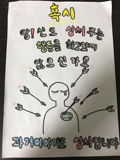 언어폭력예방 작성자2325조성진|작성시간20.07.03|조회수459 목록 댓글 0 글자크기 작게가 글자크기 크게가 우리모두 언어를 곱게 씁시다 다음검색 현재 게시글 추가 기능 열기 북마크 공유하기 신고 센터로 신고 댓글 댓글 0 댓글쓰기 답글쓰기 댓글 리스트