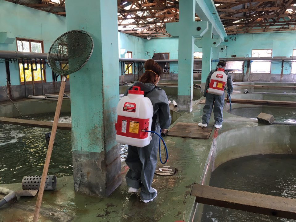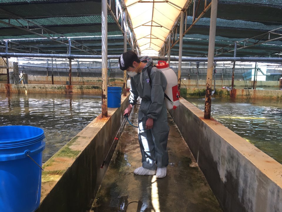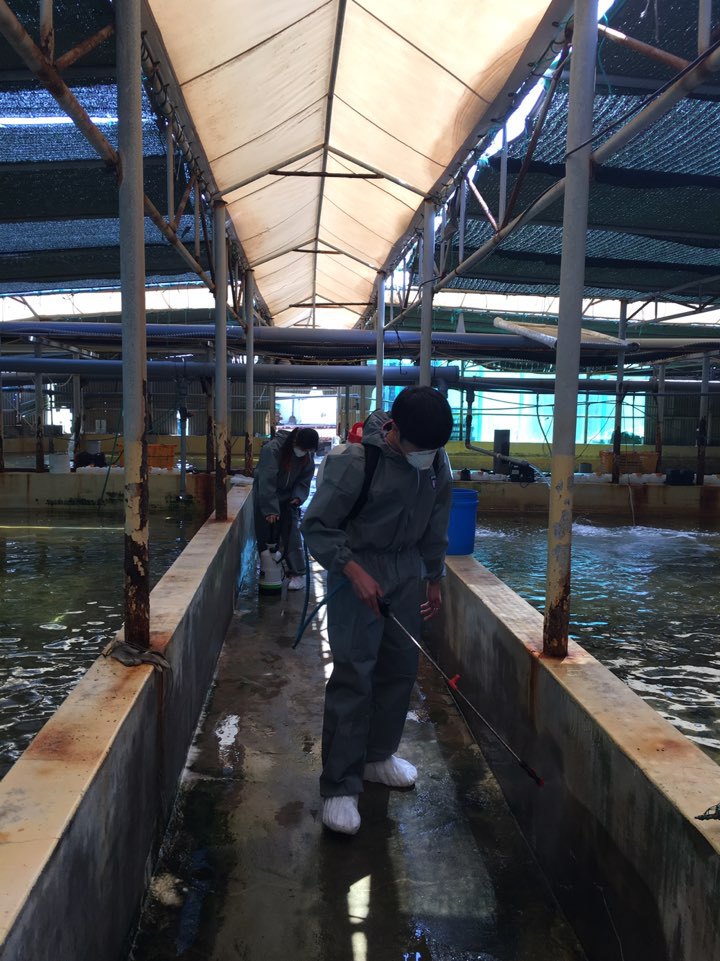 (주)한국수산방역기술 황세명 연구원과 부산광역시수산자원연구소 기술보급팀 윤민지 주무관님의 가르침 하에 양식장순회방역서비스를 성공적으로 마쳤습니다. 무더운 여름날씨에 도움주신 담당자님과 방역활동에 임하였던 참가학생 모두 고생많으셨습니다.