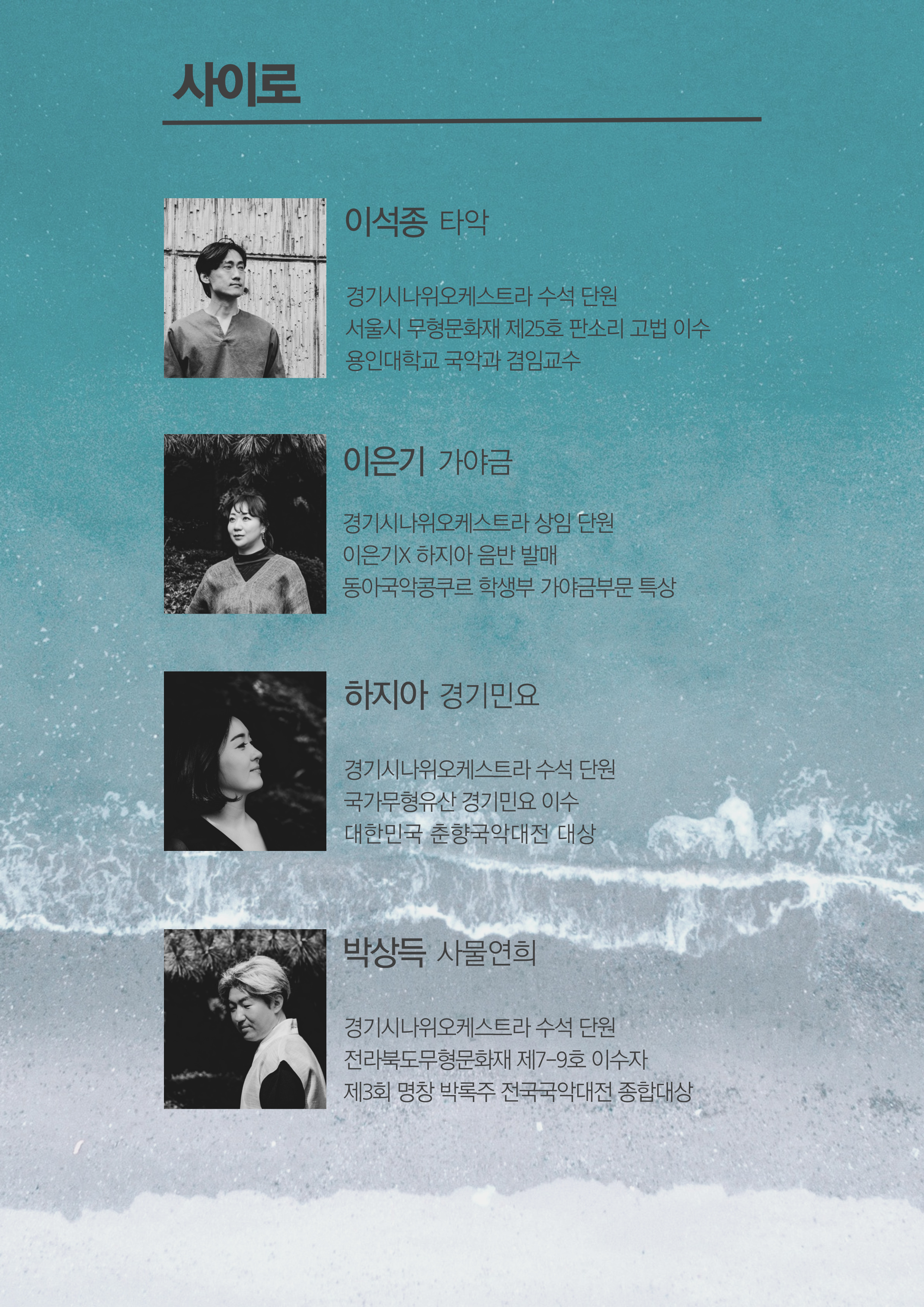 네명의 연주자들은 전원 현재 경기도립 시나위 오케스트라의