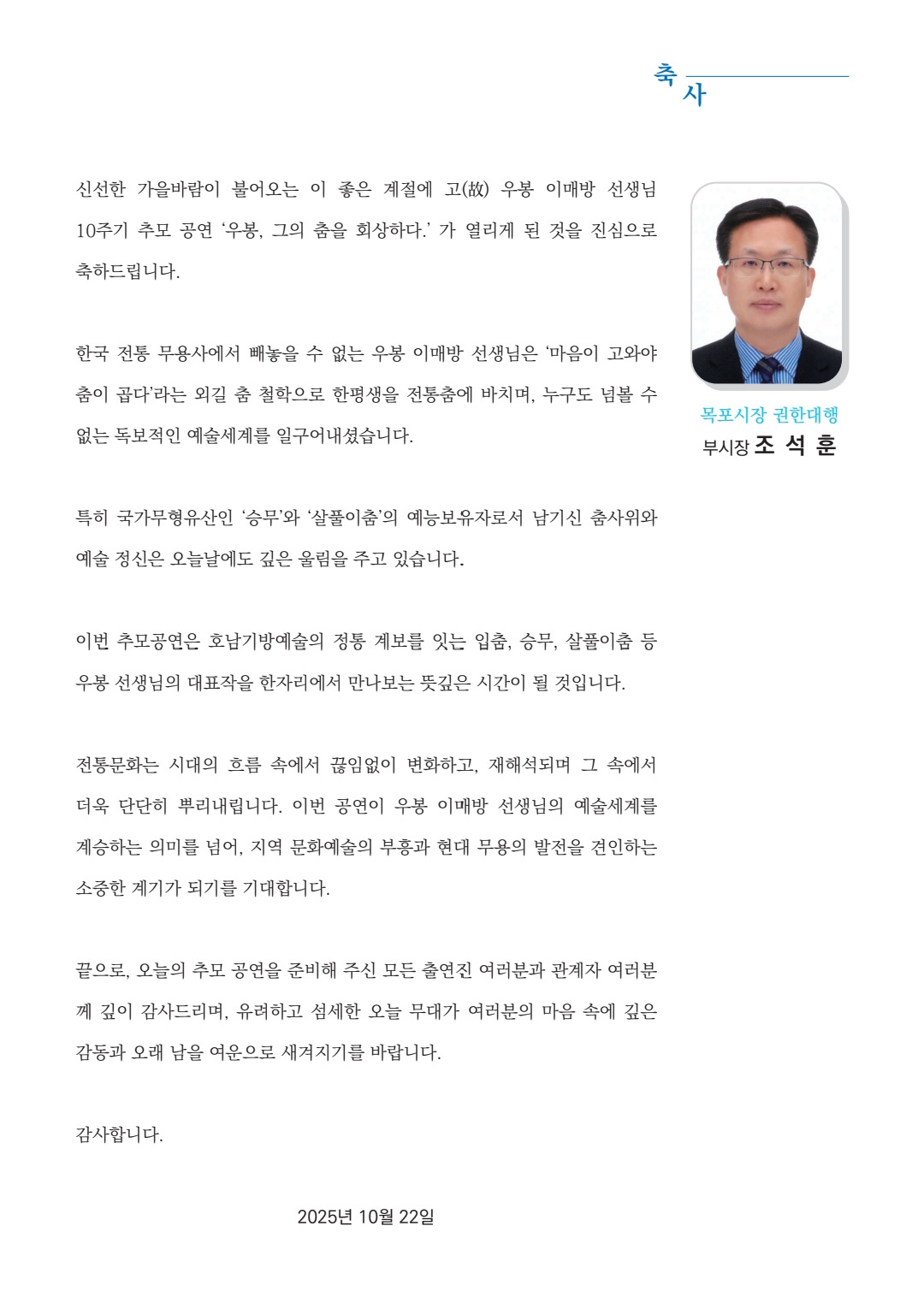 연결되는 새로운 시도의 공연으로 선생님의 뜻을 기리고