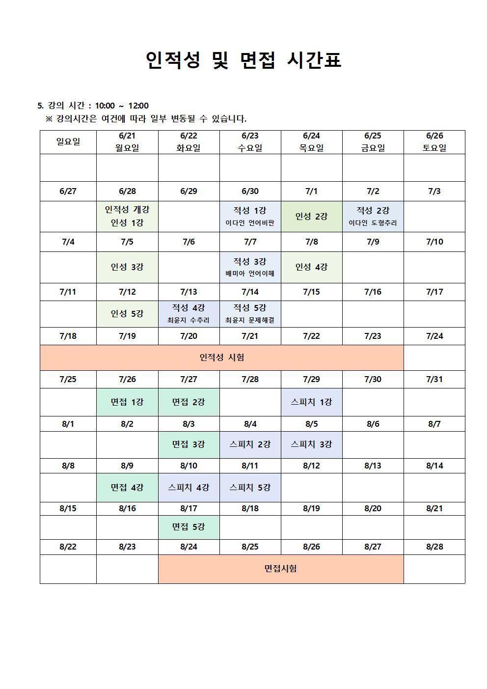 강의는 6월28일부터 실강 시간표에 맞춰 당일 저녁에 업로드됩니다.
