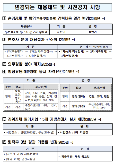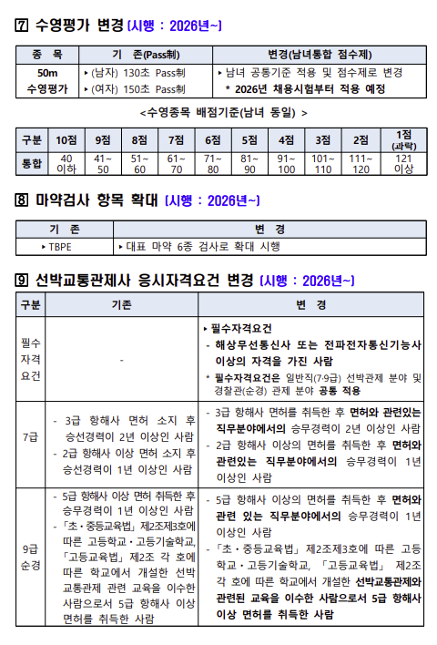 [해양경찰청][해양경찰] 변경되는 채용제도 및 사전공지 사항 작성자청해진|작성시간25.09.20|조회수876 목록 댓글 1 글자크기 작게가 글자크기 크게가 변경되는 채용제도 및 사전공지 사항.pdf191.27KB 첨부파일첨부된 파일이 4개 있습니다. png 파일 image.png 다운로드 png 파일 image.png 다운로드 png 파일 image.png 다운로드 pdf 파일 변경되는 채용제도 및 사전공지 사항.pdf 다운로드 다음검색 현재 게시글 추가 기능 열기 북마크 공유하기 신고 센터로 신고 댓글 댓글 1 댓글쓰기 답글쓰기 댓글 리스트 작성자해경s | 작성시간 25.12.15 감사합니다 댓글 전체보기