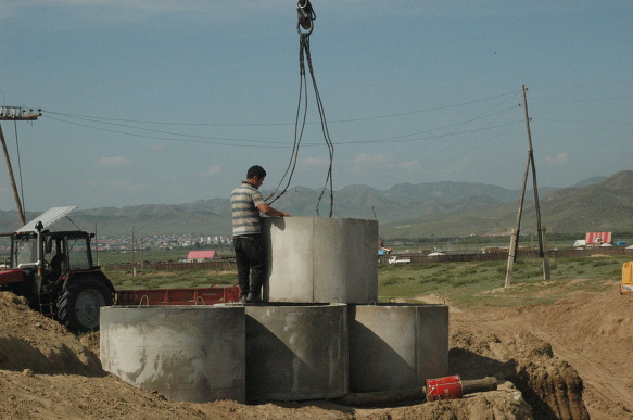 뒤 늦게 우물 수리 및 확장 공사를 하고 있습니다.