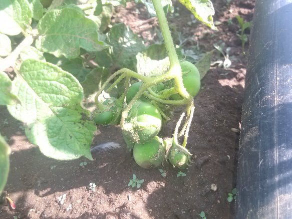 감자 꽃에서 달리는 토마토 같은 것 속에 감자 씨가 있습니다.