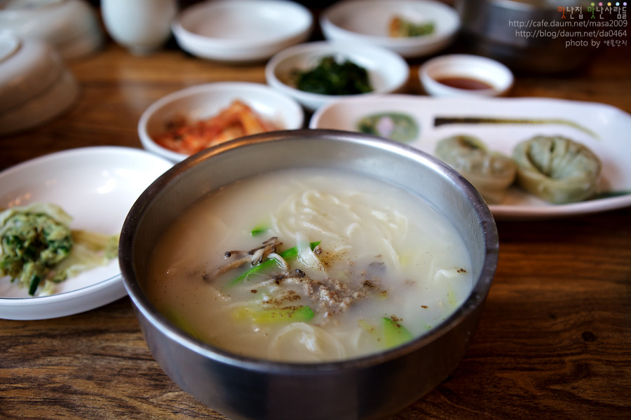 칼국수 면발은 흐물거려, 뽀얀 국물은 사기 사골빛이야.ㅋ