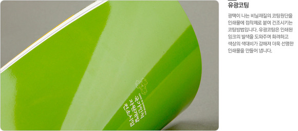 라미네이팅 코팅은 특성상 잘 찢어지지 않으며, UV코팅은 잘 찢어 지며 친환경 적입니다.