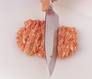 고기를 다질 때 직각으로 칼을 내리치면 칼과 도마가 많이 상하고 고기의 단면도 거칠며 손에 힘도 많이 들어간다. 손쉽게 고기를 다지려면 칼을 45도 정도 뉘어서 자근자근 두드리는 동작을 반복한다. 이렇게 해야 칼과 도마를 오래 사용할 수 있고 고기의 단면도 부드럽고 매끈해진다.