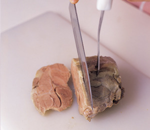 수육, 곰국의 사태살, 양지머리, 뜨거운 떡 등 부드럽고 뭉그러지기 쉬운 재료를 자를 때 주로 쓰인다. 재료에 닿는 단면이 적고 끝이 예리해 잘 썰린다.