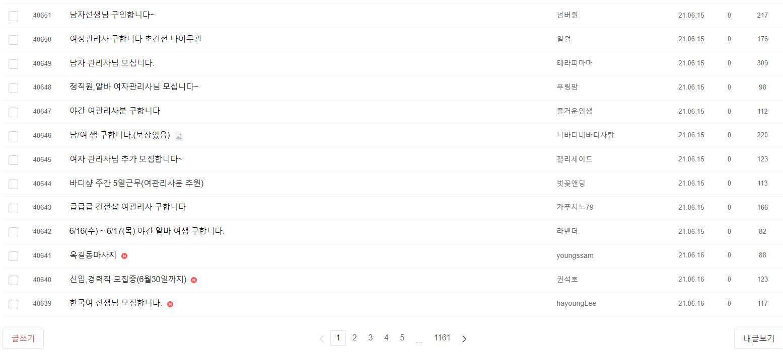 구인구직 글 게시하는 방법 공지글(아래 링크) 참고하셔서