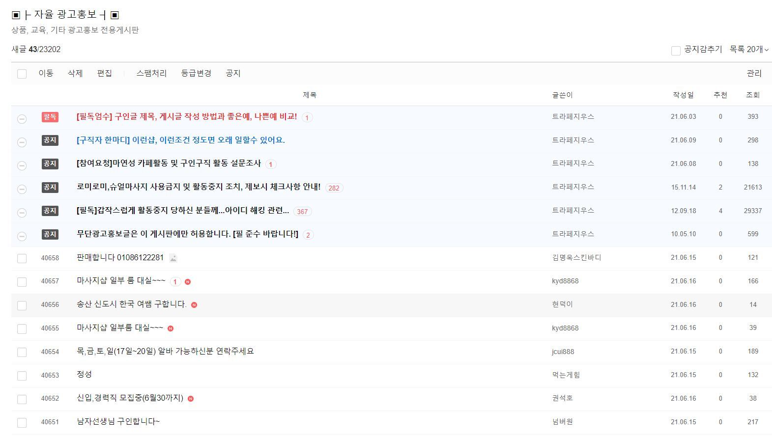 아래 이미지처럼, 카페의 [자율 광고홍보] 게시판 가보시고,