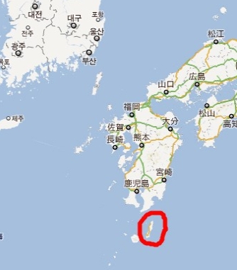 ▲ 일본 타네가시마 섬(붉은선 원내). 면적 444.99km2로
