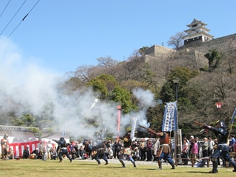 전국시대 당시 뎃포사격 시범을 보이고있다.