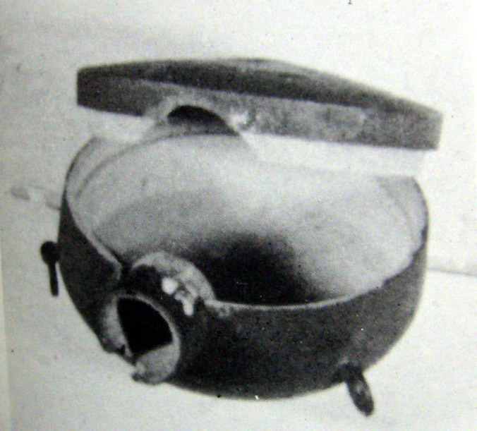 ▲ 놋쇠로 만들어 졌음직한 희귀한 귀약통. 흑색화약 용기는 보통