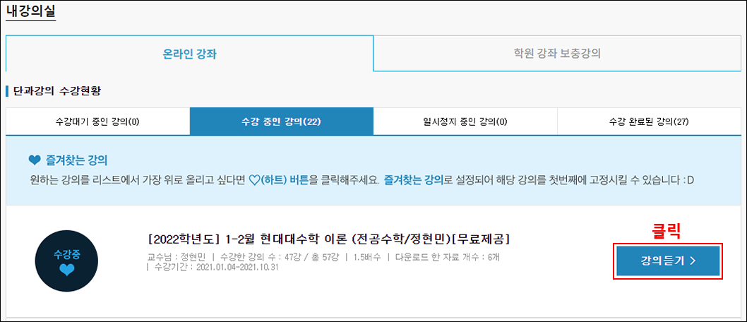※ 동일한 강의로 중복인증하는 것은 인정되지 않습니다.